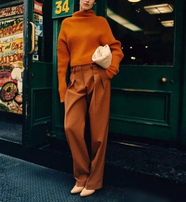 阔腿裤作为职场穿搭的另一关键部分, 它们弥补了过度露肤带来的寒冷感,版型的选则上注重舒适度和自由度,同时也要注意裤脚的长度, 以确保它们能够和大衣相搭配,展现出整洁利落的形象;整体风格可以偏向硬朗利落,减少甜美可爱的风格元素。
