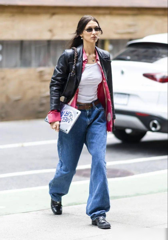 搭配思路一:牛仔裤+皮夹克,纵横街头的酷飒组合