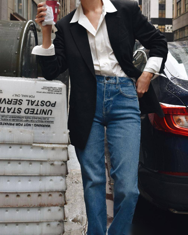 在轻职场的穿搭中,适度的露肤可以增加整体造型的轻盈感,创造出一种既专业又不失活力的形象。 选择露肤的部位需要谨慎,避免过度暴露造成不雅观,比如v领露出锁骨与肩部线条,微微上提的袖口展露手腕和小腿,避免大面积的露肤才是高级的味道。